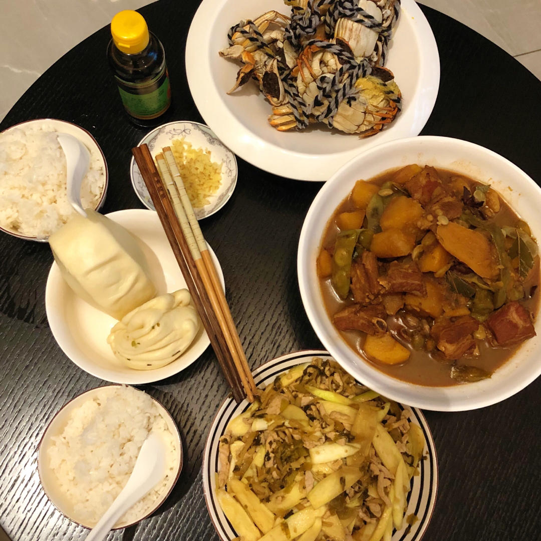 小姚_yy 做过 晚餐·2020年9月26日 #晚餐·2020年9月26日# 男朋友出差的一星期,只有外卖陪伴孤独的我 :( 。今天终于回来啦!土豆排骨炖豆角+茭白雪菜炒肉丝+大闸蟹! 2020-09-27