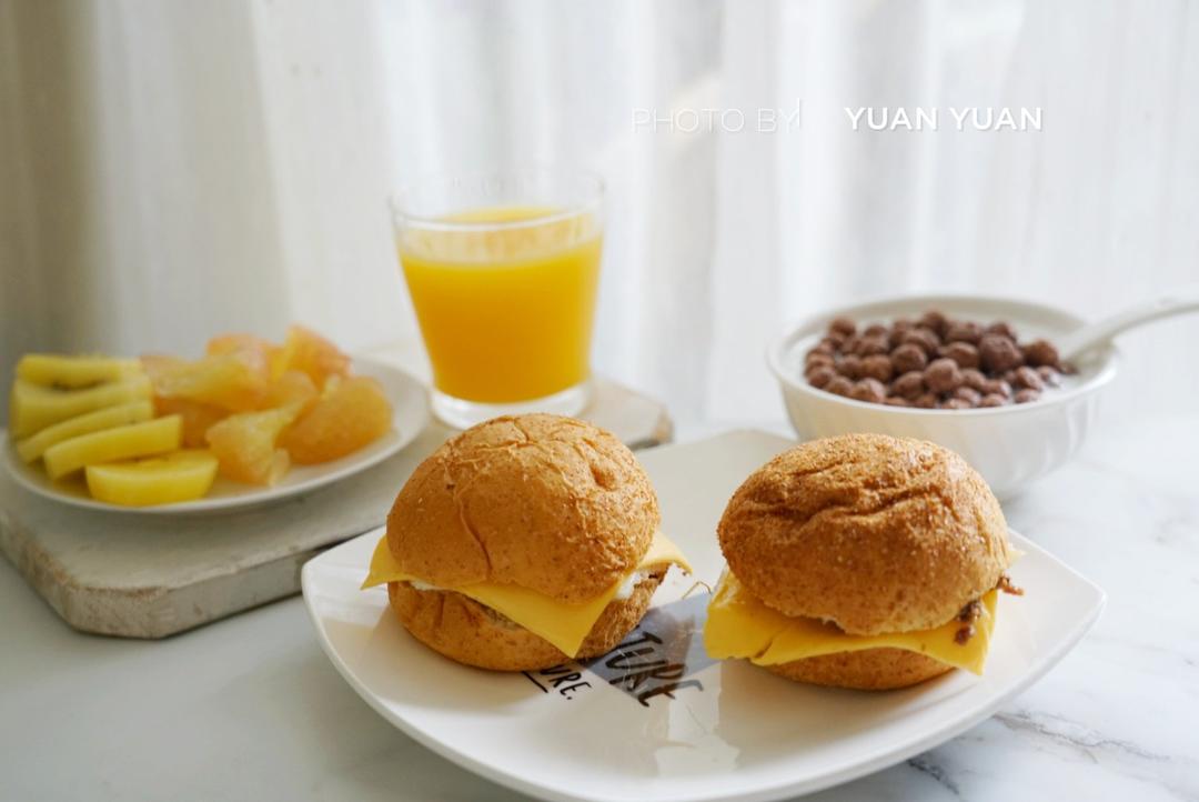 昨天一个人去逛了宜家,带回了两个全麦面包就想着今早可以做汉堡🍔 。