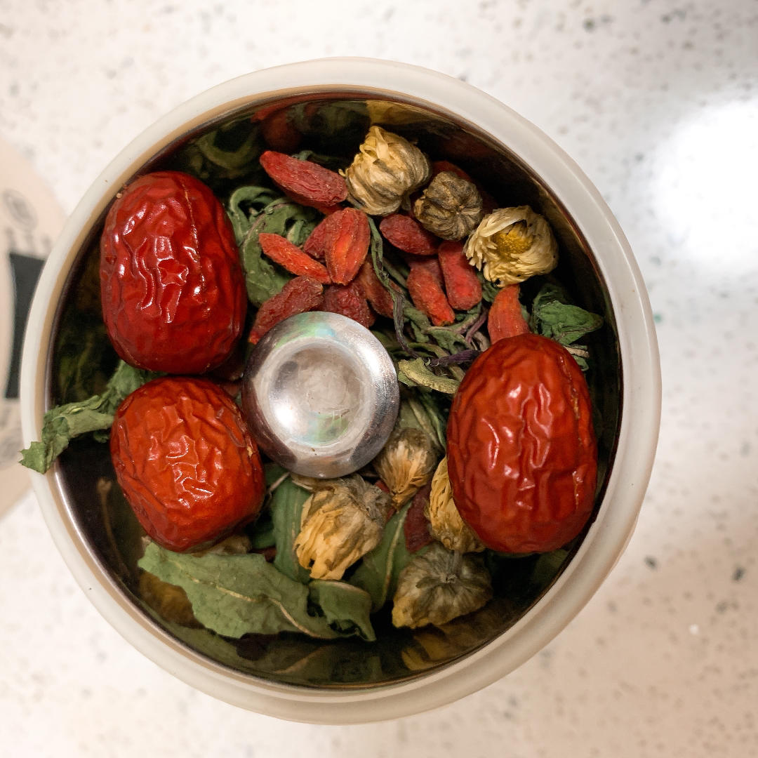 蒲公英,菊花,枸杞,红枣。清除内热,预防衰老。
