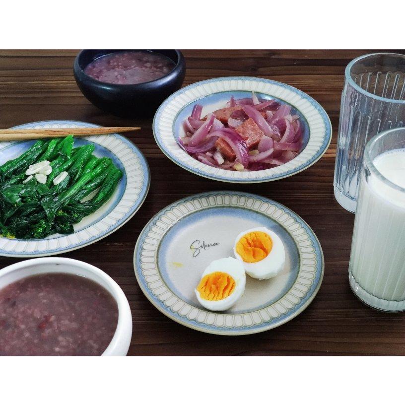 某童鞋急匆匆吃完的早餐,还是一杯牛奶与水煮蛋,别的,完全看不上。我说钟院士喜欢的红豆粥哦!提前浸泡与预约,软糯得很!有人只呡一口就放下,说,苦的。好吧!只要不是肉粥,都是苦哈哈。20201113周五,阳光温暖,洋葱炒午餐肉,蒜蓉菜心与水煮蛋,主食是红豆粥,一杯纯牛奶,简单的早餐简单吃。音乐随机播放,刚好是自己特别喜欢的一首曲子,宿羽阳,《十一种孤独》。#早餐•2020年11月13日# #2020默~#