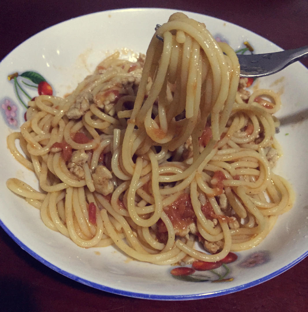笑笑小脸蛋 做过 晚餐•2020年11月13日 #晚餐•2020年11月13日# 好吃呀😋么么哒肉末+盐黑胡椒,腌制,炒肉末盛出,炒西红柿丁+水烧开+盐+意面煮软+肉末,汤汁变少+酱油、糖、盐、黑胡椒收汁✌️ 2020-11-13