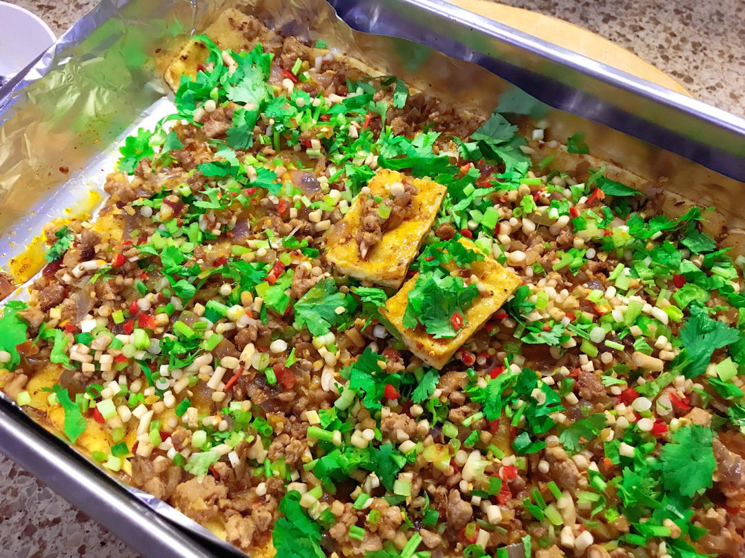 echo喵喵喵喵 做过 好吃赛过肉的烤包浆豆腐 #包浆豆腐# 绝好的方子,看着繁琐,做起来超简单。肉末是自己宰的一坨肉,以至于成了肉粒,没想到口感爽爆。小米辣折耳根香菜和葱是灵魂哈,铺开肉末再均匀撒上。从此告别烧烤店。第一次做动作有点慢,吃成了宵夜🌝 2020-11-14