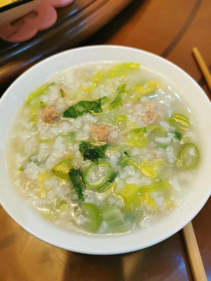 酸菜炒平菇、韭菜豆干,白菜豆角瘦肉粥,周末的养生餐 ,一口气吃了三碗……