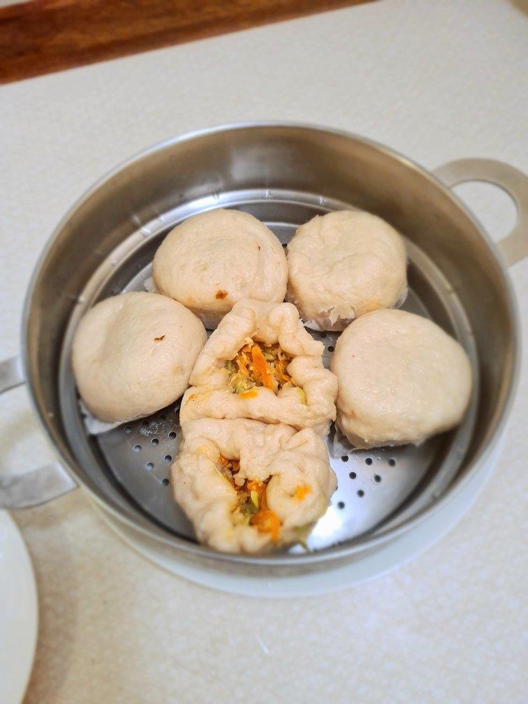 胡萝卜西葫芦粉丝鸡蛋包和麻薯叉烧包 为什么我的菜包子永远都合不上嘴😅