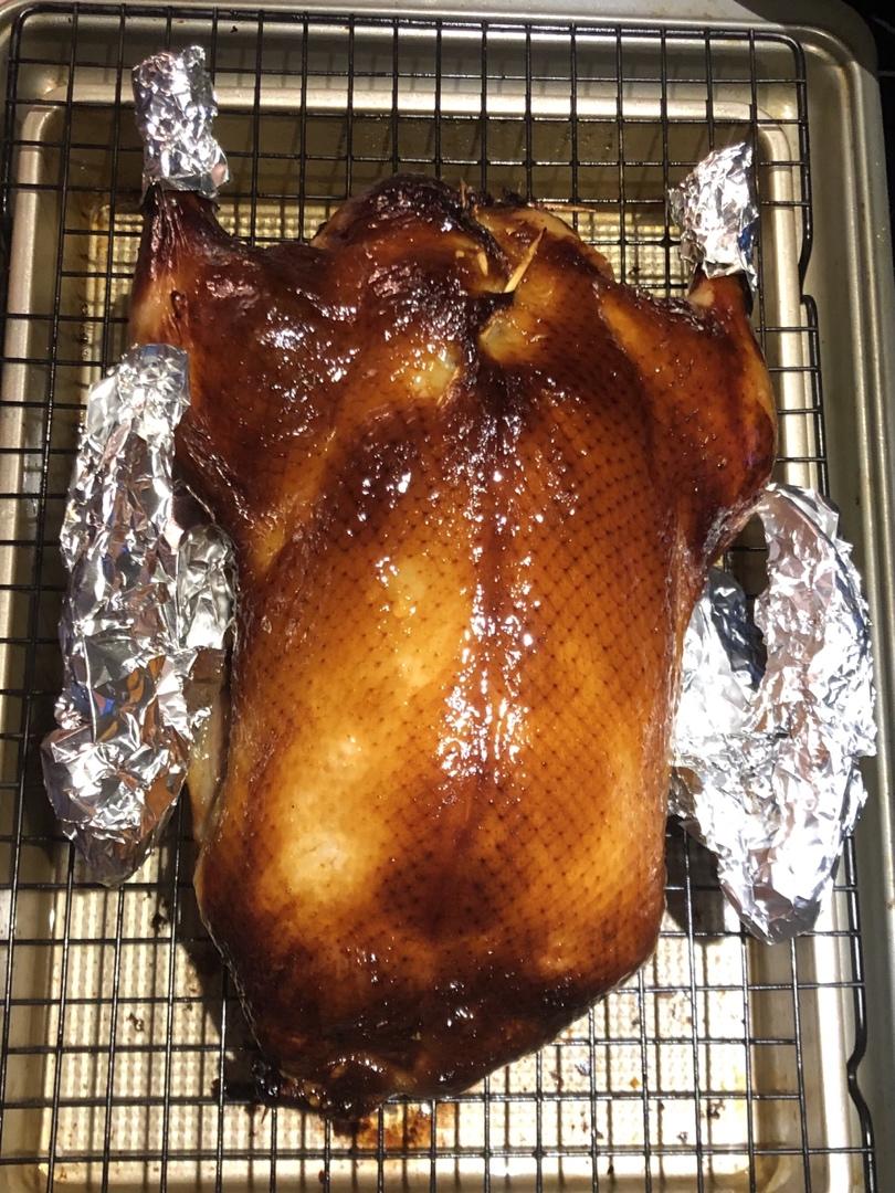 MissCarefreeness 做过 晚餐•2020年11月16日 第一次在家里烤,皮有一部分很脆,但脂肪多的那部分就不脆,整体味道是很好的,里面鸭肉鲜嫩多汁。#晚餐•2020年11月16日# #北京烤鸭# 2020-11-17