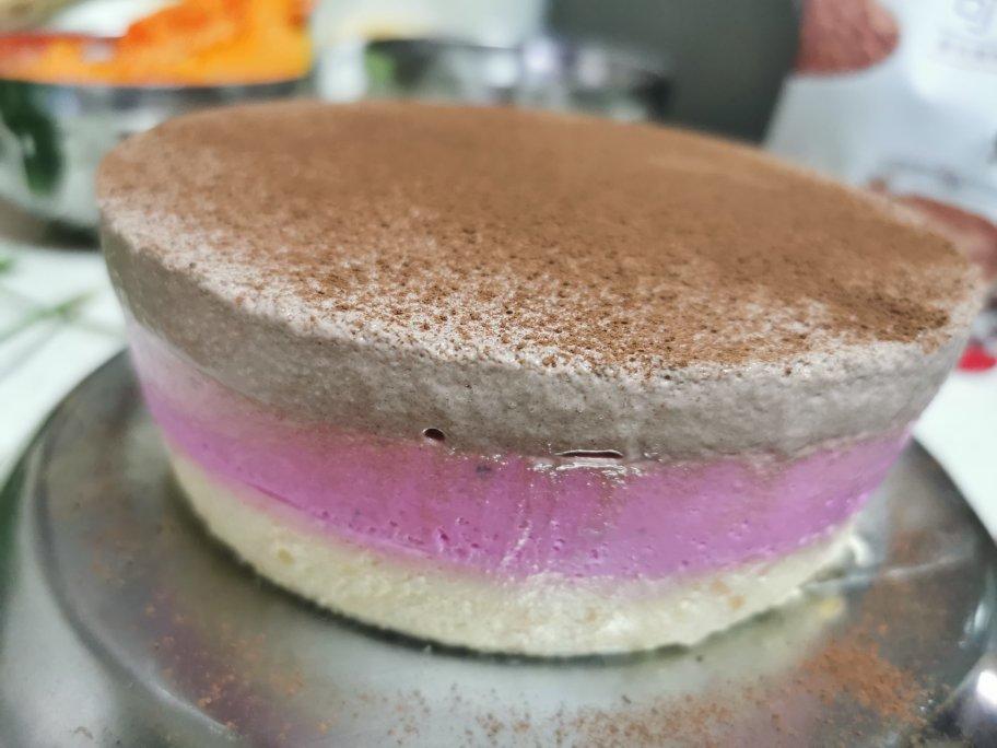 做了芒果火龙果可可三层的慕斯,超喜欢这个搭配,好看又好吃,下次尝试加入蛋糕胚