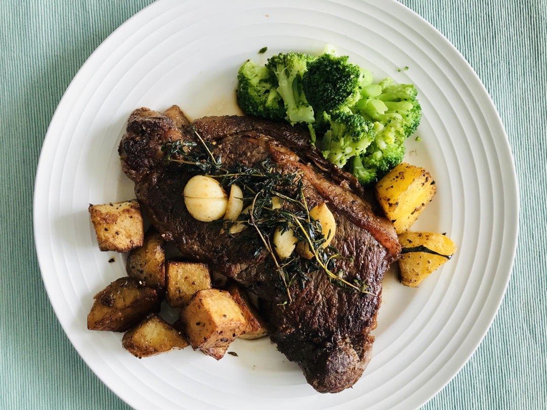 牛排➕煎土豆➕煎橡果南瓜➕西兰花