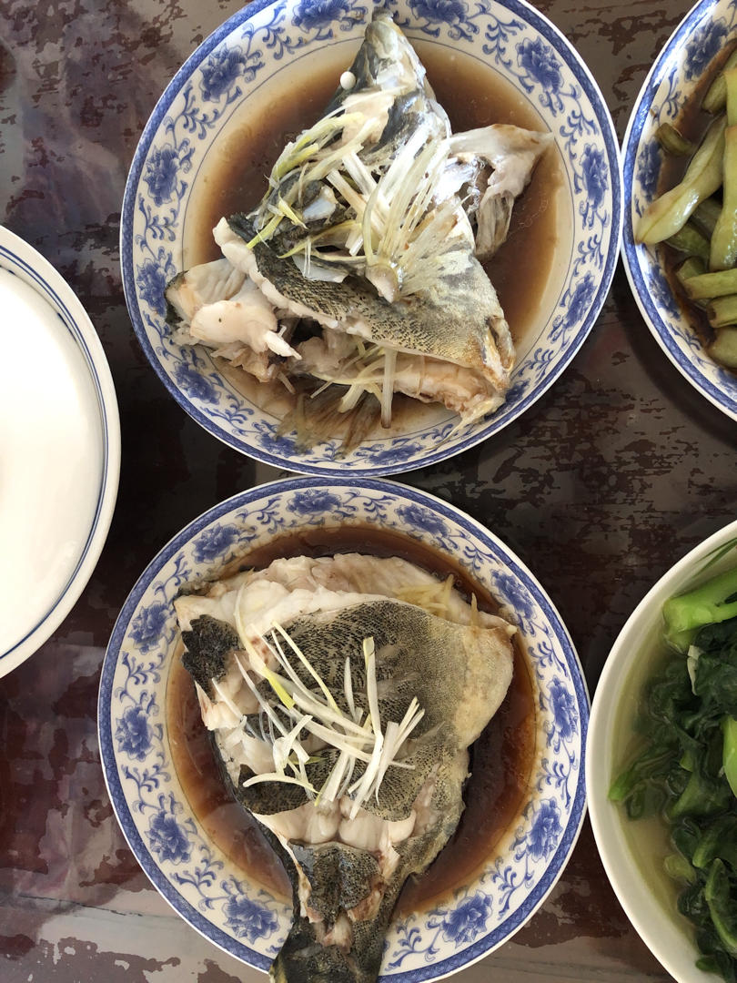 鱼太大了,只能搁两个盘子里蒸了,非常好颜值高!