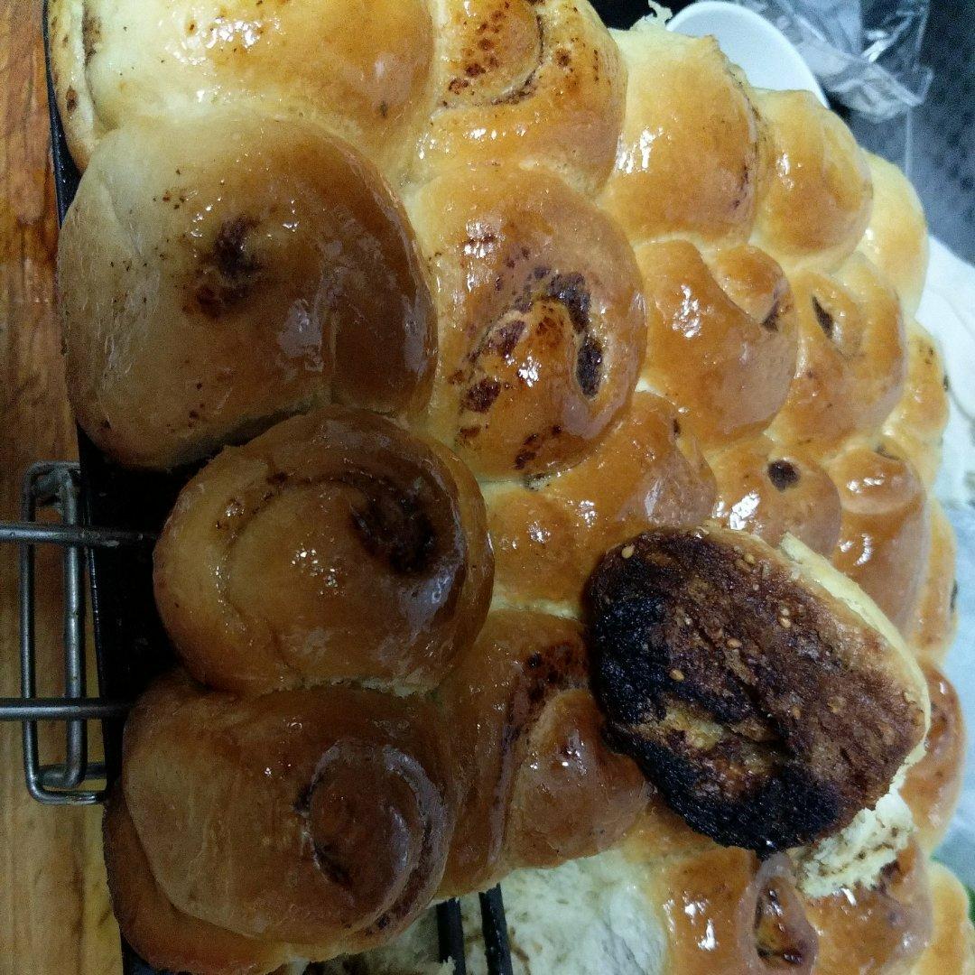 苏小墨L 做过 脆皮蜂蜜小面包 高粉不够了,加了普通面粉,又参考了别人的方子,加了水,看着加的,就是剂子多分出来两个,烤盘又是个低的,然后有点翻车,主要原因就是面发的厉害,挤挤歪歪的把油都挤出来流出来了,所以底下不是很酥,发酵完又跟吃饭撞车,预热完就只开了下管吃饭去了,忘记调温度,幸亏时间不是很长,不然直接糊的没法吃了,也没鸡蛋了……就没刷蛋黄,也忘了刷油,主要当时发酵完的场面有点手忙脚乱,烤完拿出来我闺女就很自觉的拿了盘子等着我给她装……自己煮了枣泥做馅,闺女吃完一个了,在来的路上了😂😂😂 2020-11-23