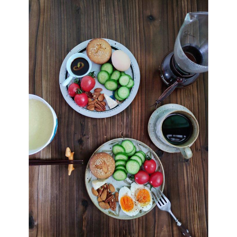 蓝默默 做过 早餐日记·默 难得今天有人不吵外出吃白粉,起风了,老老实实屋里做早餐。脆皮蛋糕、水煮蛋、青瓜、樱桃小番茄、坚果与奶酪。给帅哥安排了鹰嘴豆豆浆,我是黑咖,我现在只喜欢黑咖。20201128周六,晴转多云,今天听的是老樊的歌曲,隔壁家的,《多想在平庸的生活拥抱你》。#早餐•2020年11月28日# #2020默~# 2020-11-28