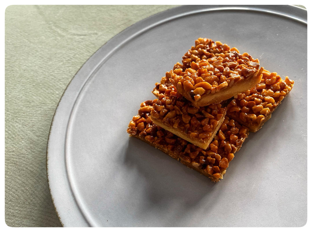 啊呜嗷呜嗷嗷 做过 浓香杏仁排 总算找时间做了,味道和哈尔滨的一模一样哈哈饼的糖减到了50,覆馅的糖减到60,在烤盘里擀平以后就用刀切一半,然后翻面再放进烤盘,我是在两张油布中间倒来倒去的。烤箱190度中下层烤20分钟,然后熬上面的糖浆,用了100克的榛子,做出来也很好吃,然后190度下层20分钟,要烤到上层颜色很深的焦糖色,饼底略微上色,等到和手温变不多就可以翻面切割了,由于之前已经切过一半了,现在切起来就很轻松,如果等到完全冷了再切反而不是很好切 2020-12-01