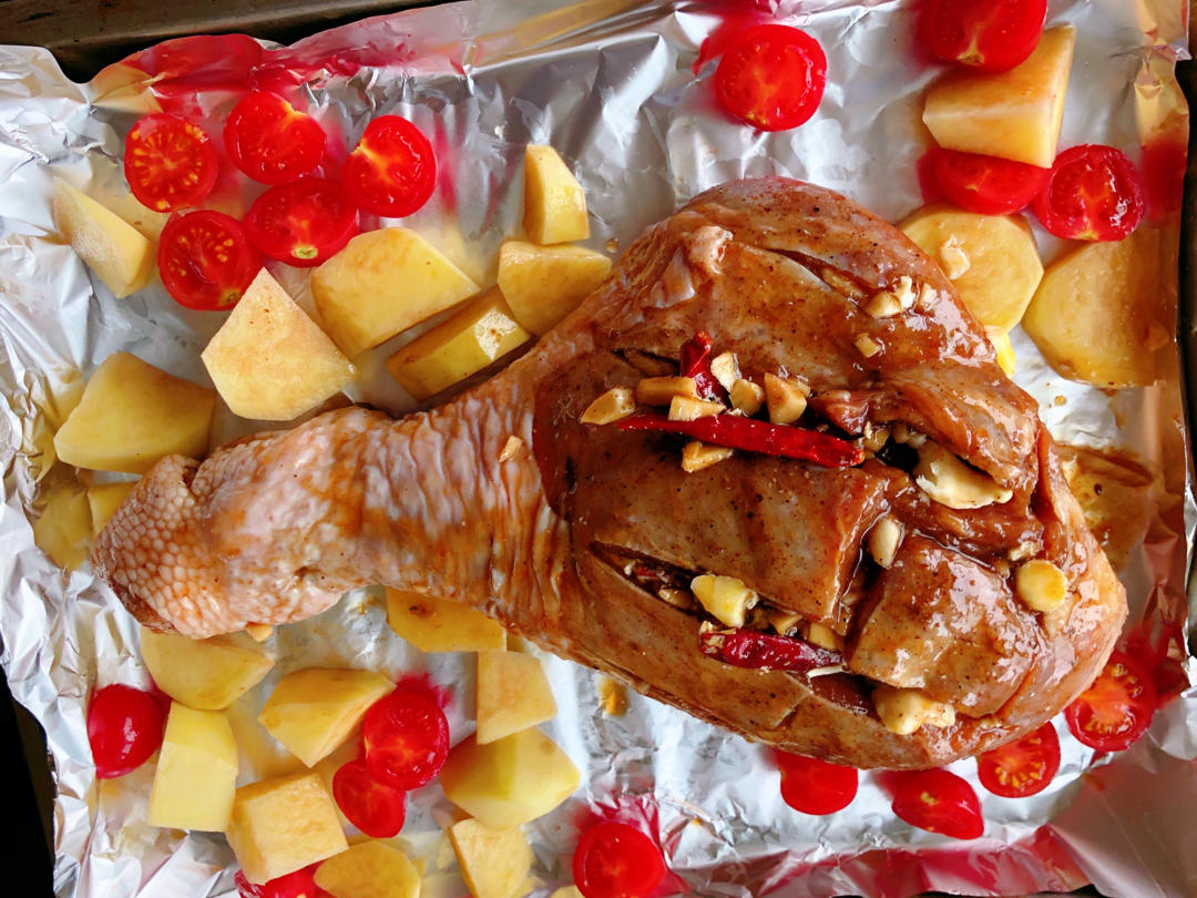 老大一只烤火鸡腿贼好吃,一下子吃光光