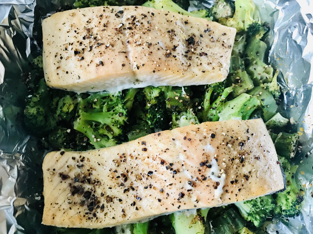 烤三文鱼➕西兰花➕秋葵