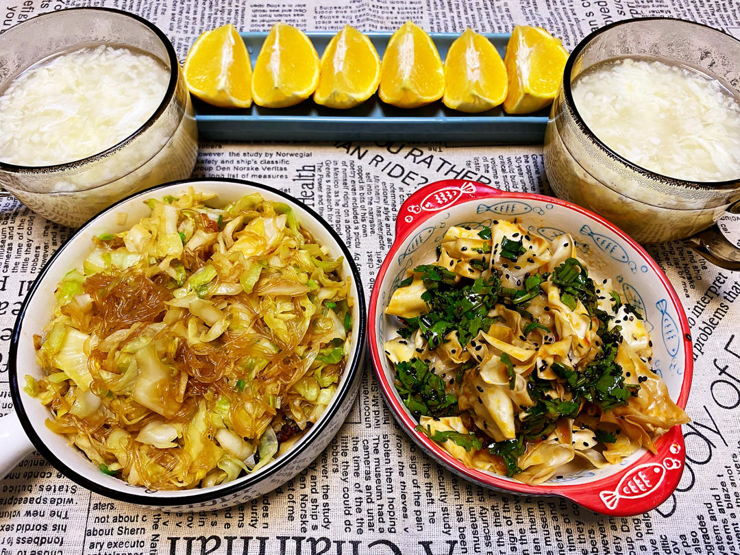 米酒蛋花汤➕红油虾仁🍤抄手➕包菜粉丝煲➕褚橙🍊