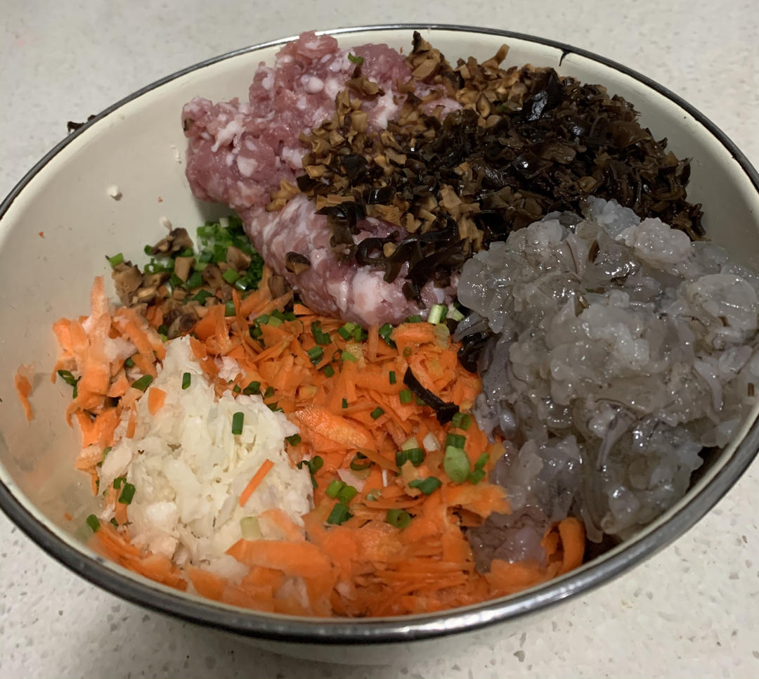 开心豆妈 做过 2020年12月06日 除了虾肉和猪肉,其他配菜可以随意,我放了香菇木耳、笋、胡萝卜、马蹄、葱。生姜水、盐、麻油、一点黄酒、一点糖、一点鲜酱油、一点蚝油。👨:比新丰好吃。👦:比新丰好吃一万倍。👧:比新丰好吃一亿倍。第一次在食堂吃到就计划着尝试一次,果然受欢迎😋弟弟创意糖果馄饨🍬 2020-12-06