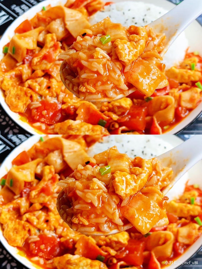茄汁浓郁,好吃到舔盘的番茄蟹柳盖浇饭~