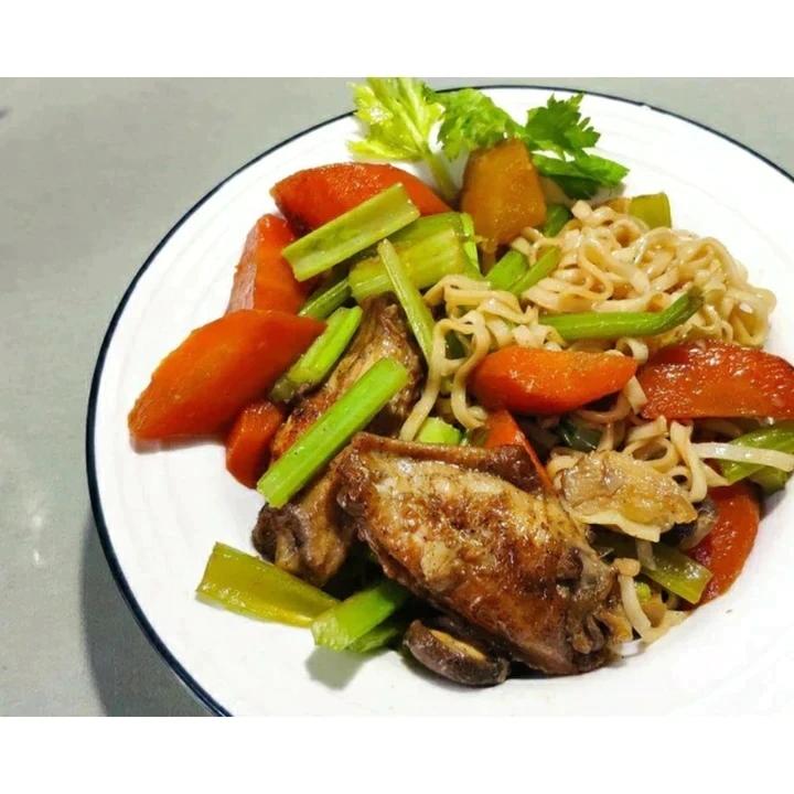凯棣Diary 做过 夏日营养焖饭焖面,排骨,鸡翅,鸡腿,鲜虾,时蔬都可以做,不用一身汗也能吃到好吃的! #午餐•2020年12月13日# 用了鸡翅中,胡萝卜,土豆,大蒜(4~5瓣),西芹,香菇梗,葱,火锅面面饼。很多黑胡椒。鸡翅昨天淹了一夜。💖 再有点培根🥓就完美了。 2020-12-13