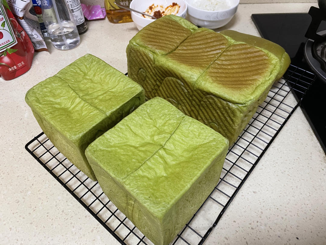 宝宝猪担担面 做过 比生吐司还要好吃的香草北海道吐司 双倍的量 加了9g的抹茶粉 没有香草荚所以加了香草精(不知道什么时候能买到娘娘的香草荚)超级好吃…刚出炉就在晚饭后吃了250g水立方的一半今天下午又吃了450g的一半 冻在冰箱里的 复烤150度8分钟外面脆脆的里面软软的更加好吃了我有罪qaq 2020-12-14