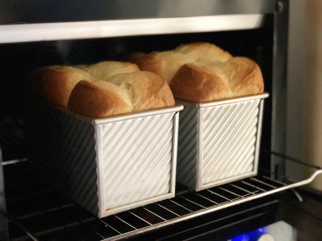 四个鸡蛋加牛奶共340g,其他材料翻倍,冬天二发基本需要两小时,但丝毫不影响最终的爆发力。面包香软可口,非常棒的一个方子。