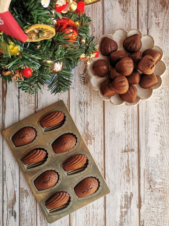继续圣诞美食氛围,栗子可可玛德琳。感觉孔洞多了些,不知是否面糊静置时间还不够。