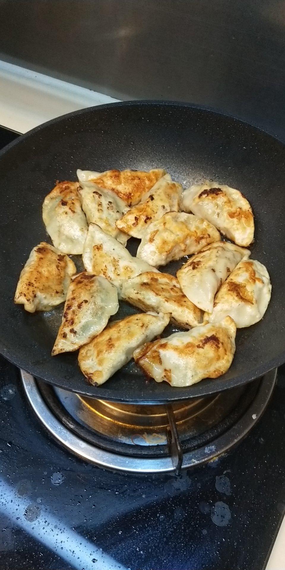 自己包的韭菜饺子,煎起来简直不要太好吃