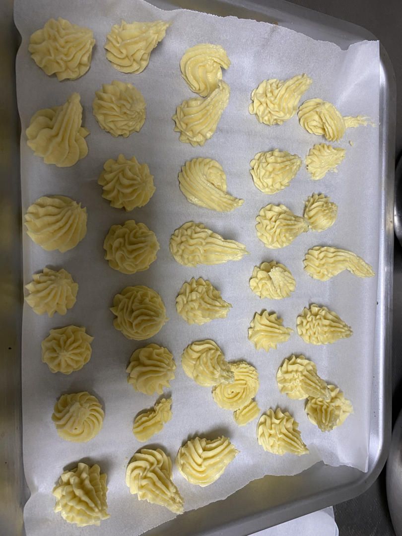 厨神经小lu 做过 最好吃没有之一的曲奇! 混合好之后太硬,裱花袋挤破了,然后加了大概50毫升牛奶,以为要翻车了,好在烤完味道稍差一点,没不加牛奶的酥,但是也好吃。下次一定不加牛奶。方子不错,是我喜欢的曲奇的味道。 2020-12-30