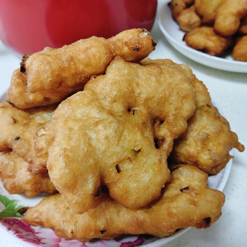 经过上周的实验,今天改良以后,做成功了,表皮酥脆,内里暄软,800g面粉炸出来好多,给自己点赞