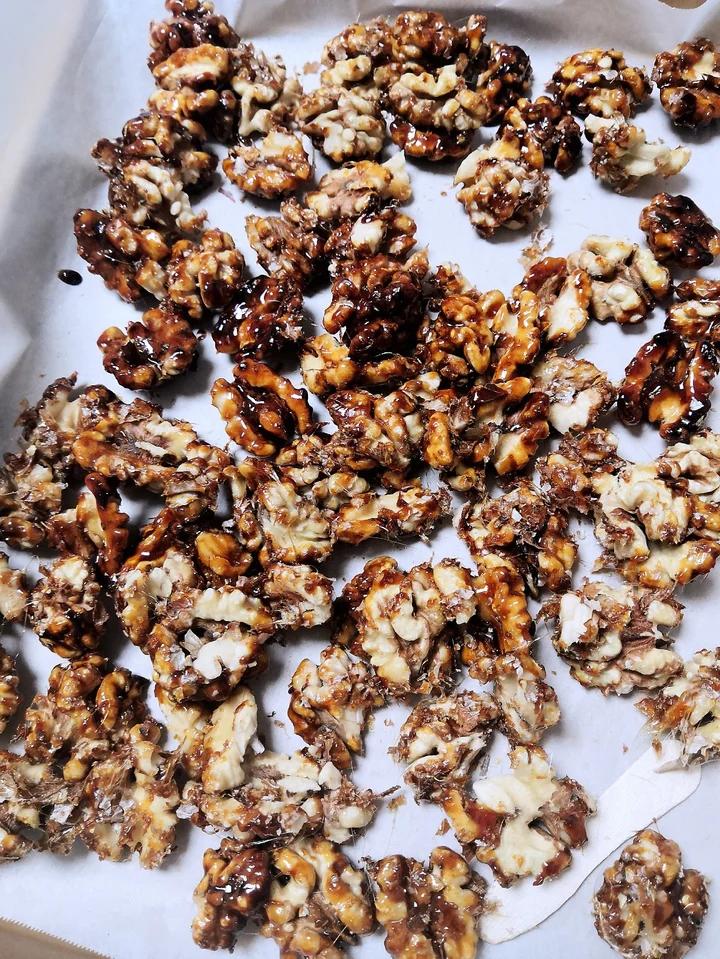 anpaihao 做过 【琥珀核桃仁】冰糖无油不粘手 冰糖150,麦芽糖50,水100,核桃500。核桃预热150烤15分钟,做完脆的很好吃。但是这卖相是翻车了,主要从锅里倒出来到平铺这步,拔丝,粘皮,都破相了,太难搞了。 2021-01-14