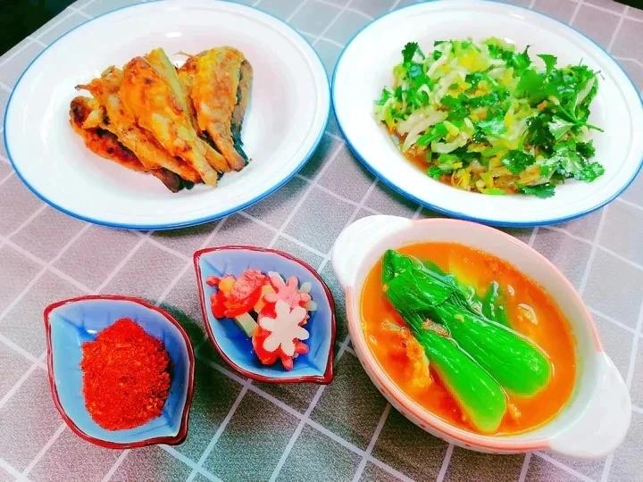 佛系路人甲Anna 做过 午餐•2021年1月16日 #午餐•2021年1月16日# 小黄鱼处理掉头和内脏,加料酒、盐稍微腌制,沾干面粉,锅内少油,煎熟,装盘。娃娃菜洗净切丝,微波炉高火5分钟取出,加蒜蓉、盐、香菜、糖、生抽、香油,拌之,装盘。 2021-01-16
