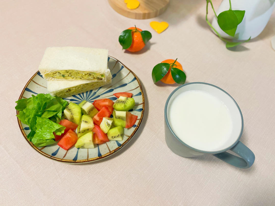 巧姑娘朱朱 做过 早餐•2021年1月23日 出门的周六:今天依旧是三明治,鸡蛋三明治。两颗鸡蛋打散,加入橄榄菜和葱花,搅拌均匀,摇身变成柔软的鸡蛋碎。为了好看切掉了吐司的四边。今日份绿色是猕猴桃和生菜。虽然要赶高铁,也不妨碍按自己的意愿吃早餐。早安#早餐•2021年1月23日# 2021-01-23