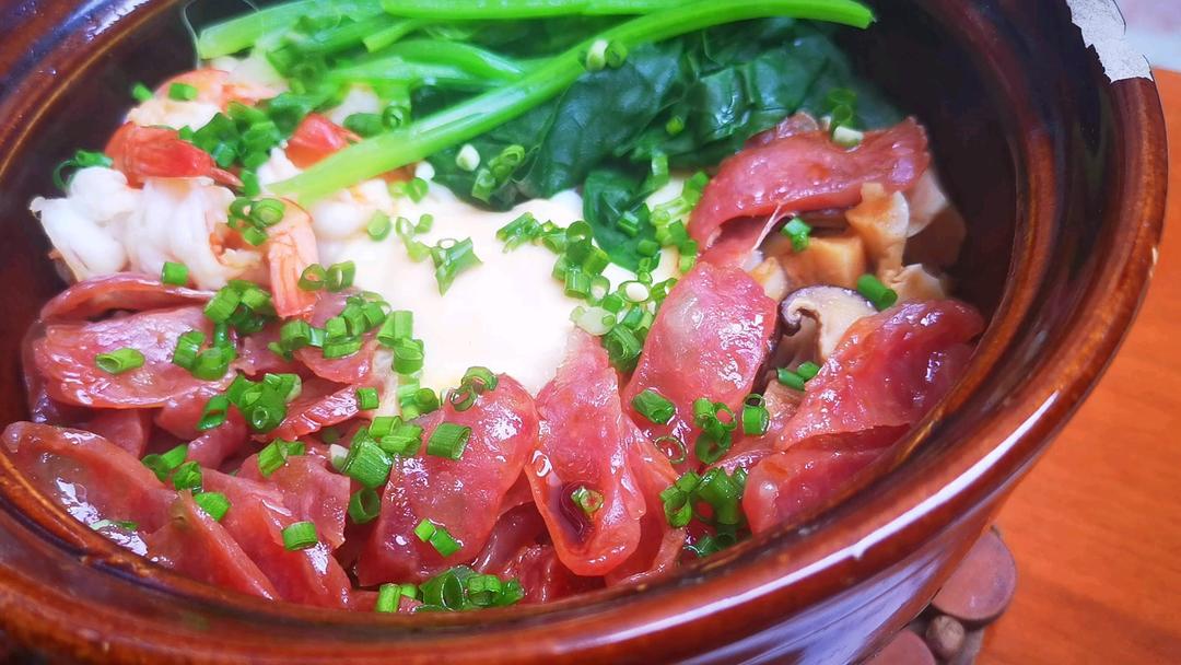 买了香肠,煲仔饭赶紧吃起来