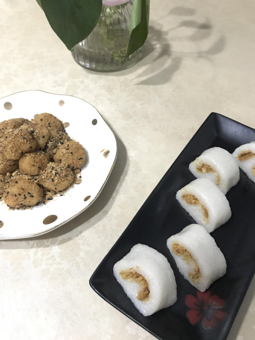 第一次尝试用面包机做年糕,此配方含大米,口感比预想的软糯又不会太粘,做了豆粉和沙拉肉松两种口味,简单美味😚