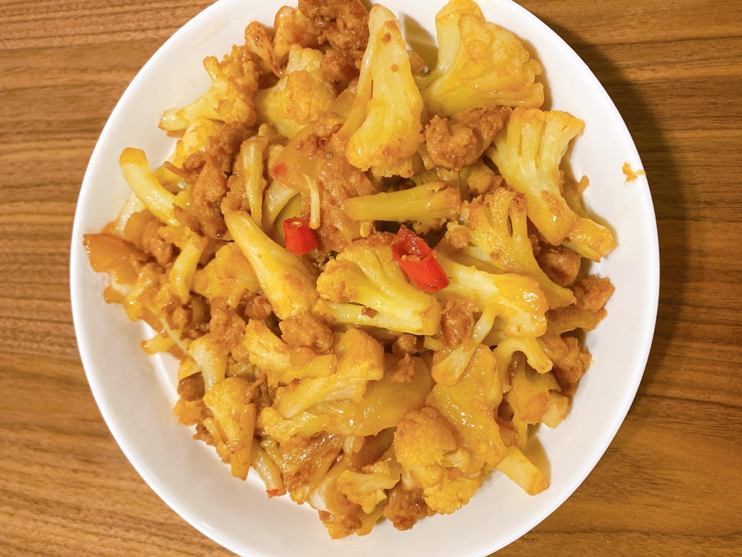 花菜,油面筋,素肉,小米辣,咖喱