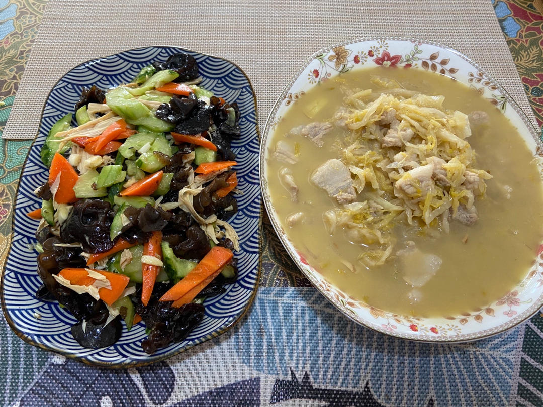 珊瑚77 做过 午餐•2021年1月30日 #午餐•2021年1月30日# 临近春节,休息日都比较忙呀,收拾屋子打扫迎新,所以午餐就只能简单点咯!买的有机酸菜配了五花肉,酸香吸附着肉的油脂,格外香。再简单弄个凉菜,主食是山西剔尖面,都是快手饭和菜。 2021-01-30