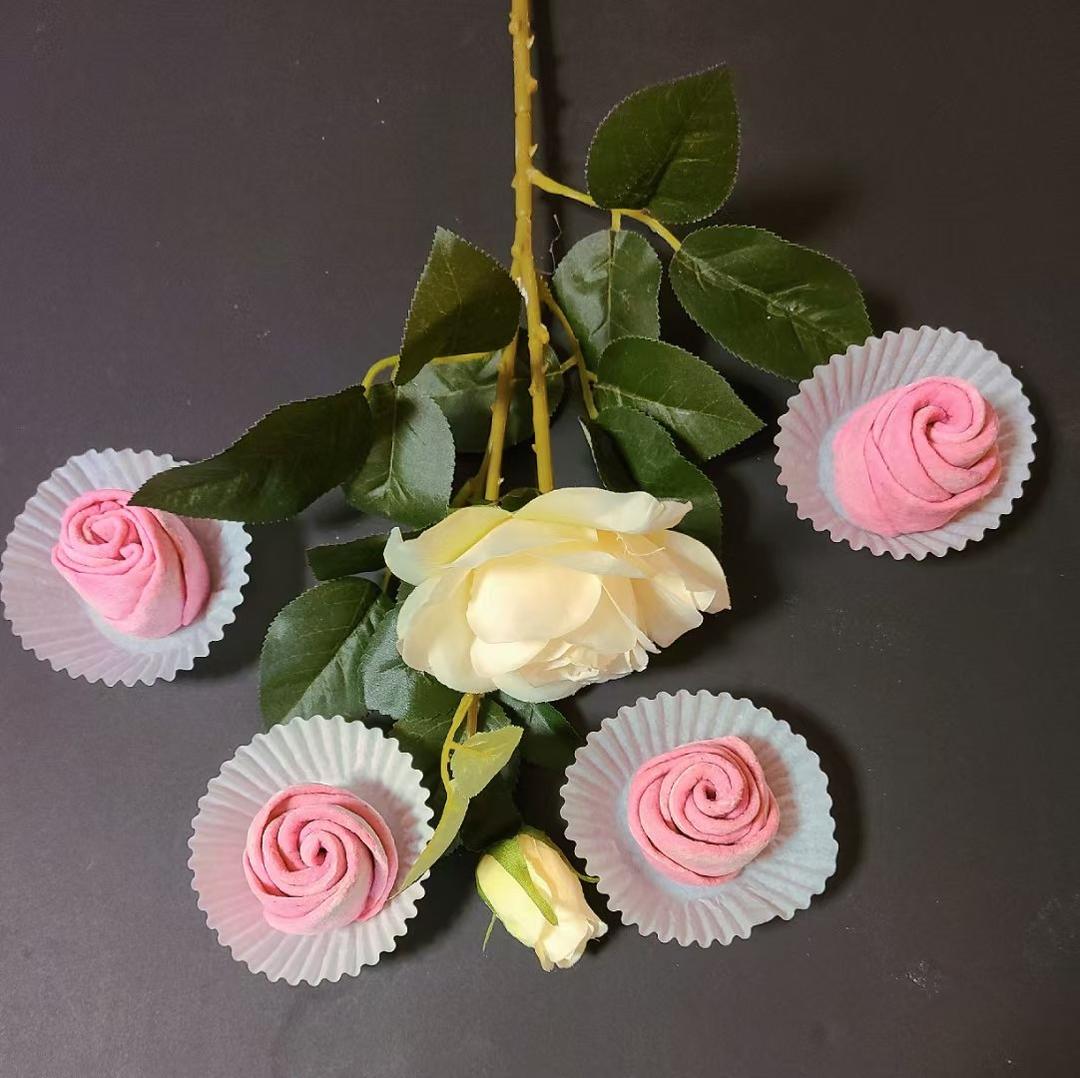 用1个火龙果皮榨汁,做了红色汁。红玫瑰加热,蒸熟后变成了白玫瑰