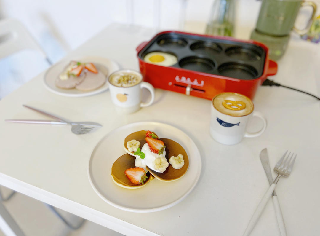 AILI__J 做过 爱就是在一起吃好多好多顿饭 过年前一起吃的最后一顿早餐❤️某天的早餐:原味松饼🥞➕草莓松饼🍓&太阳蛋🥚&拿铁☕️#午餐•2021年2月11日# #一不小心,过上了喜欢的生活# 2021-02-11