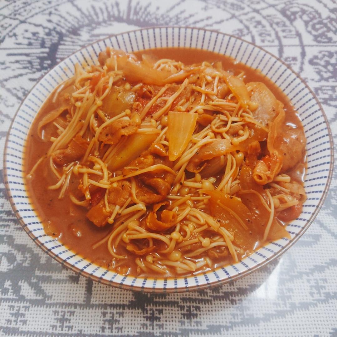 爱吃食物的铝孩子 做过 番茄肥牛金针菇 #午餐•2021年2月14日# 1个西红柿,半个洋葱,200g金针菇2大勺+1勺番茄酱,½小勺盐,1小勺糖¼小勺鸡精,海量黑胡椒汤汁收的浓稠一点好吃 2021-02-14