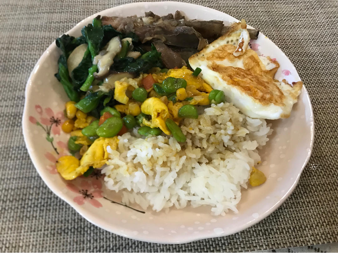 #早餐•2021年2月19日# 羊排饭,羊排汁炒杂蔬菜美味