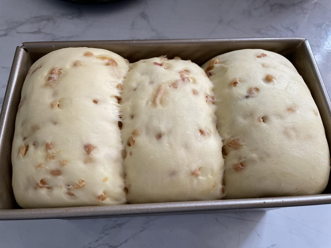 加了点儿花生碎,喜欢烤得深色一点😀