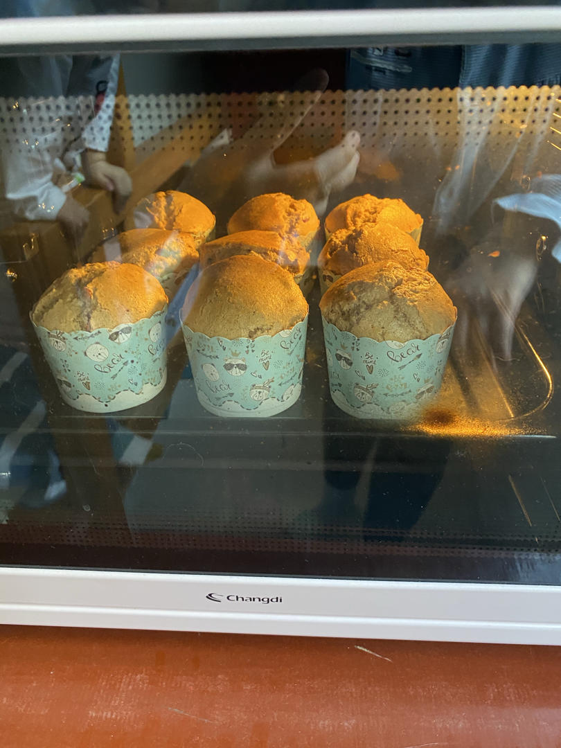 混沌女士 做过 2021年02月26日 二刷,这次红枣比较湿,所以放了85克,牛奶没有了,放了60毫升奶粉,红糖50,四蛋,油50,低筋粉120小苏打2,盐0.5,估计我蛋白打发不太到位,纸杯装了九个,150度烤了30分钟 2021-02-26