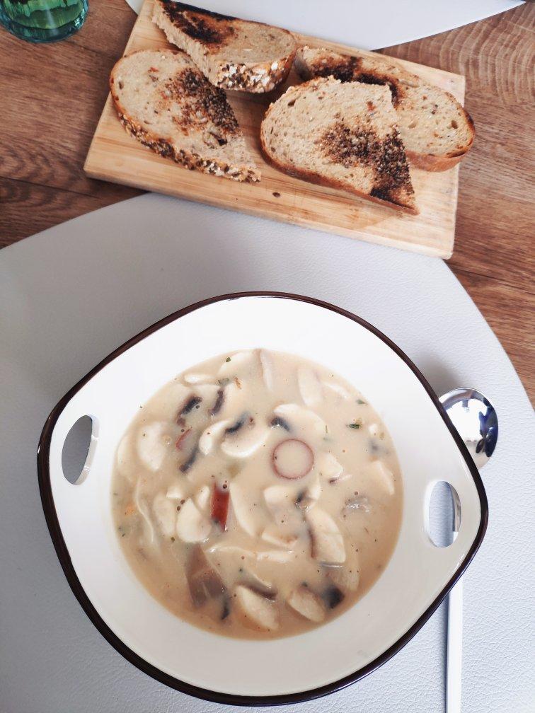 口蘑,平菇,香肠,土豆,牛奶,蘑菇汤底