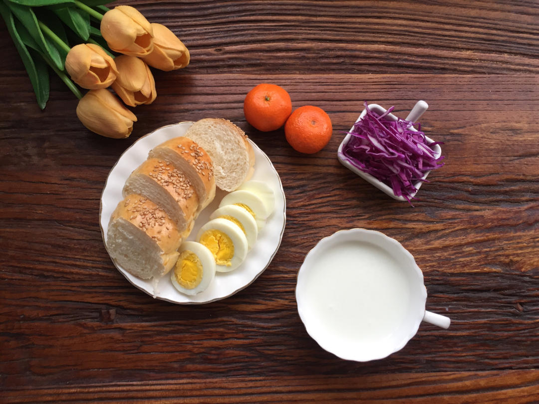 羊奶🥛+面包🥯+鸡蛋🥚+紫甘蓝🥬+橘子🍊