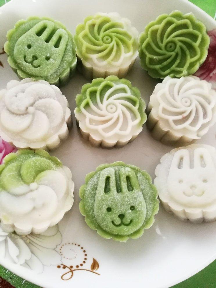 馅料我用的是自己炒的蔓越莓豆沙馅,加了抹茶粉调色,看起来高级得很