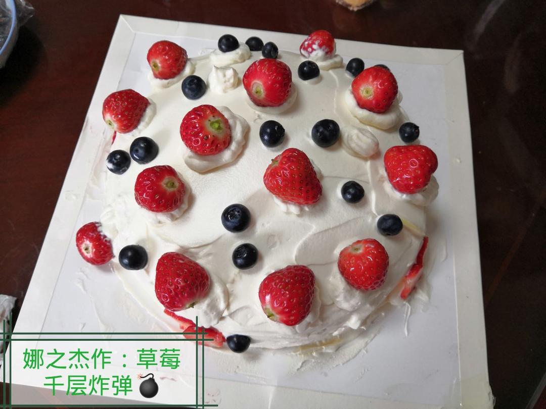 八寸草莓千层炸弹!饼皮用淡奶油30克,蛋糕抹面淡奶油550克,正好用完,味道不错😄