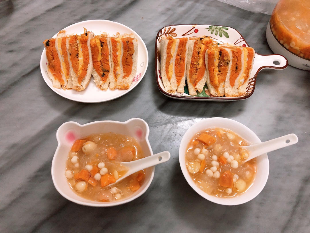 早餐六十七:三明治🥪➕鲜银耳莲子芡实番薯羹