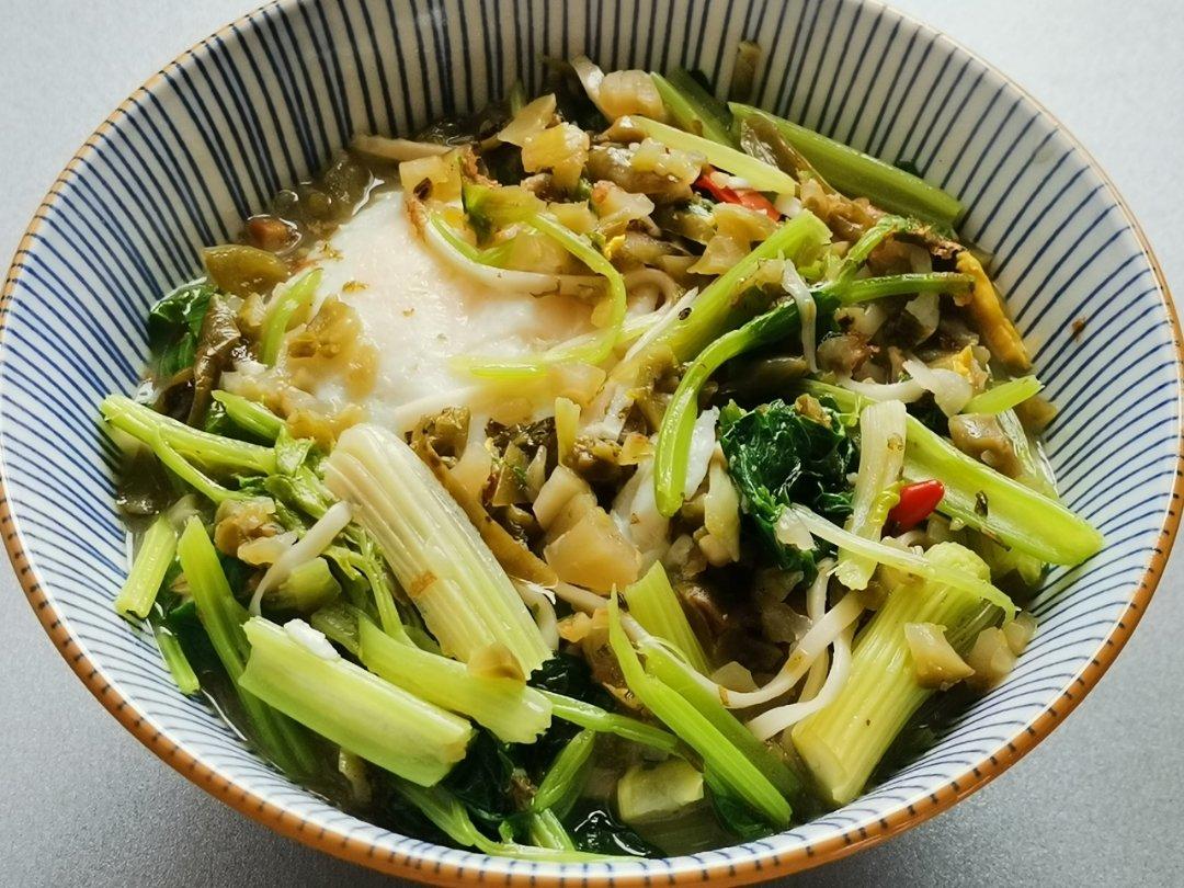 好嫩的一把芹菜,一个土鸡蛋,春笋丝若干,酸香的咸菜,一点点辣椒,一碗好吃的家常面就OK啦😀