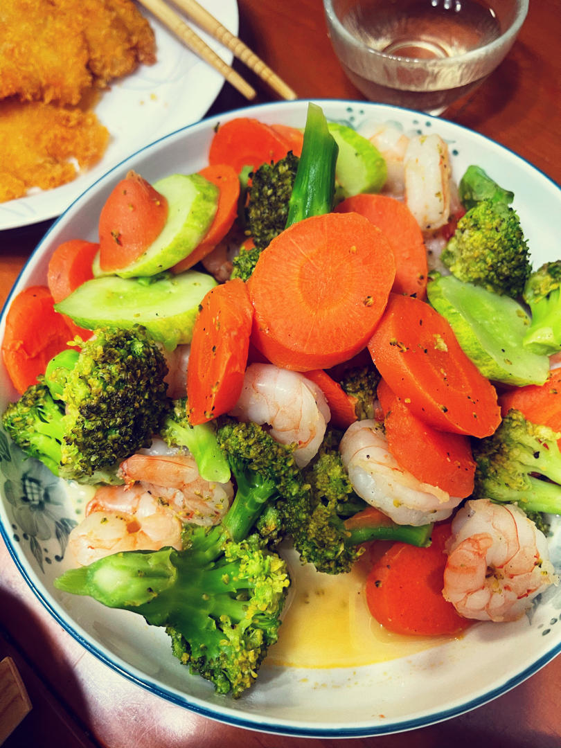 樱花开了,西兰花虾仁很美味 ,买的黑虎虾仁,QQ的。愿美食进到胃里,给我动力,明天去打败怪兽👾!