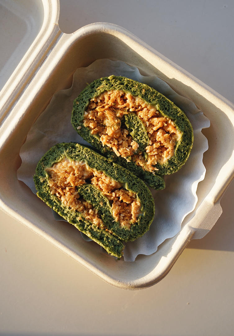 咸蛋黄肉松艾草卷 瞎做