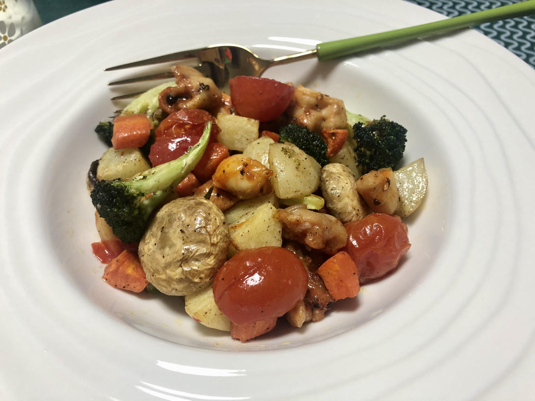 烤了西兰花🥦,也还不错,下次放点玉米、红薯、南瓜、虾,#早餐•2021年3月27日# 觉得土豆、玉米、胡萝卜应该煮熟了再烤会更好些