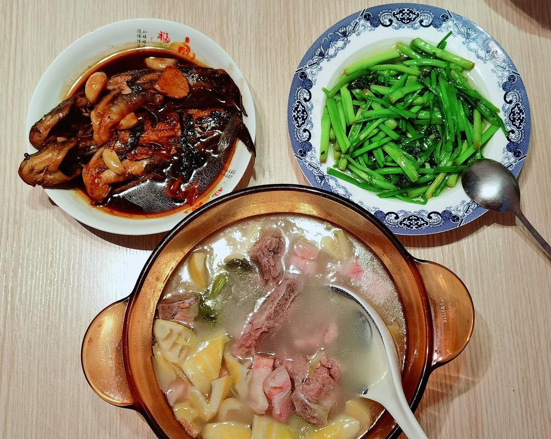 红烧昂刺鱼+炒水芹+腌笃鲜